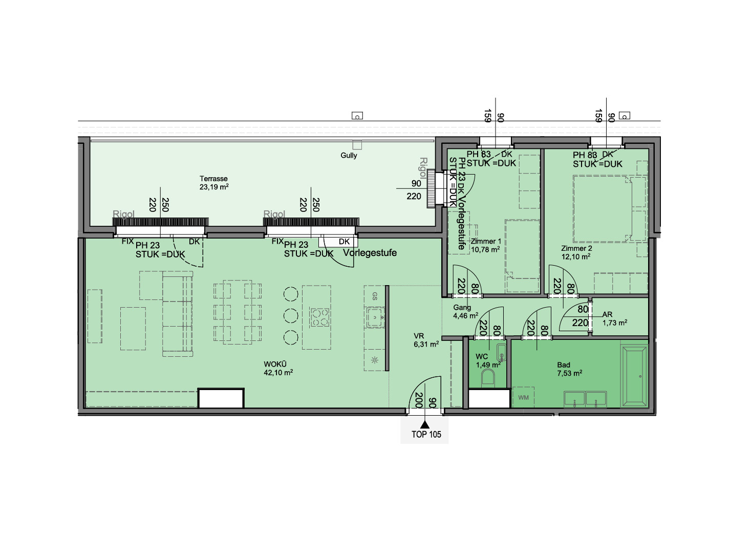 • Wohnküche: 42,10 m2